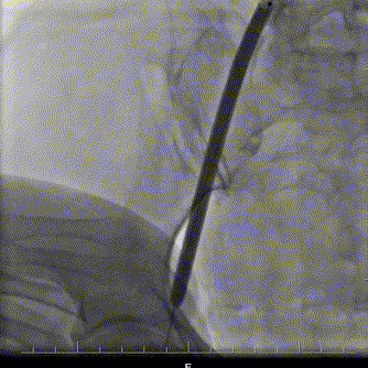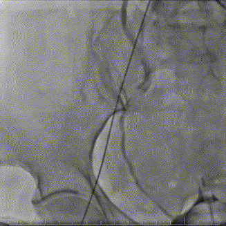 患者全麻呼吸插管,TEE,JR4.0造影导管行髂外动脉造影示:髂外动脉弥漫性狭窄,最重70%狭窄。