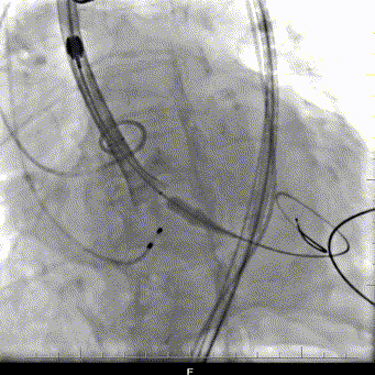 复查造影:瓣膜支架系统膨胀,微量瓣周漏,冠脉显影正常,测量压力阶差5mmHg;术后超声再次评估瓣膜形态,位置可,未见明显反流,手术圆满完成。