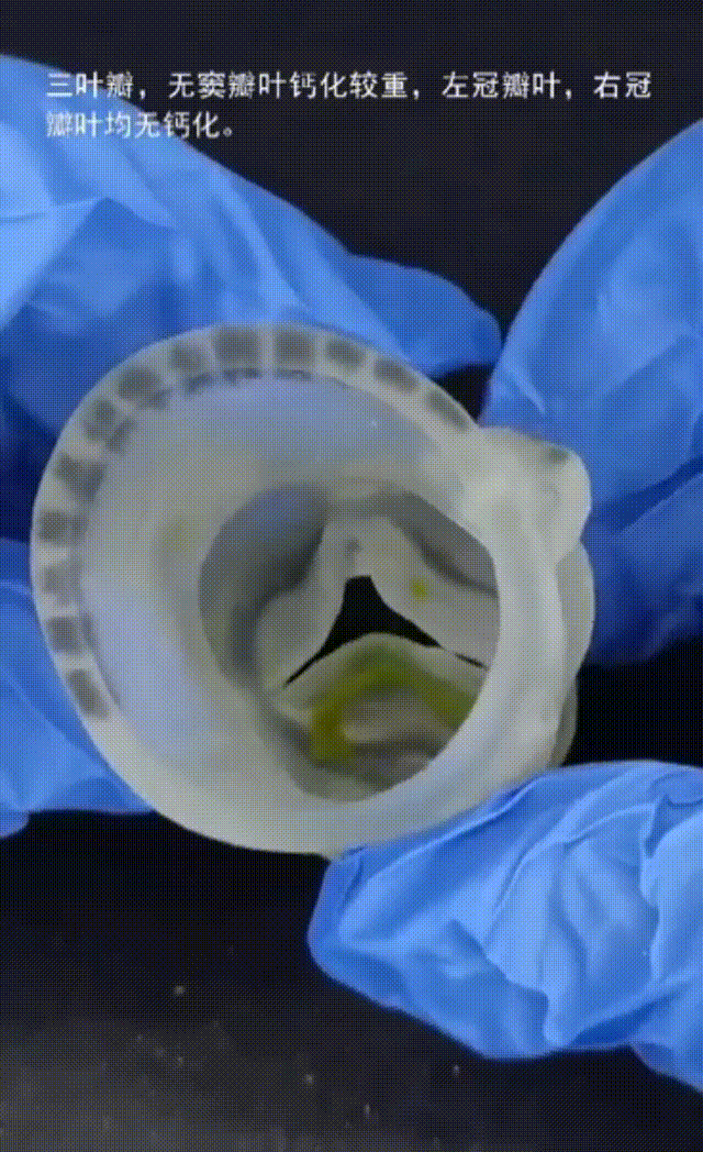 • 三叶式主动脉瓣,瓣叶增厚,R-L交界增厚粘连,轻度钙化,钙化主要沿无冠窦瓣缘分布;LVOT近似直筒型;