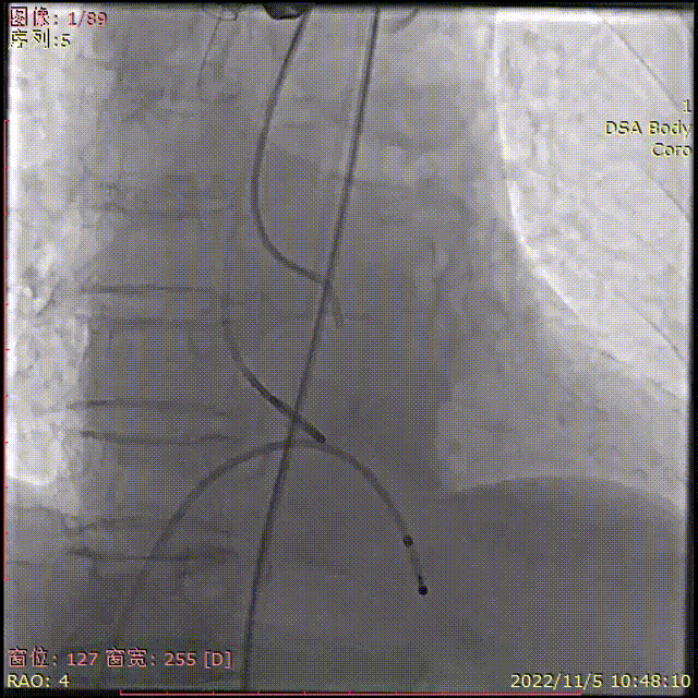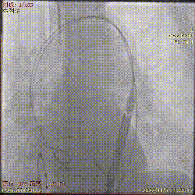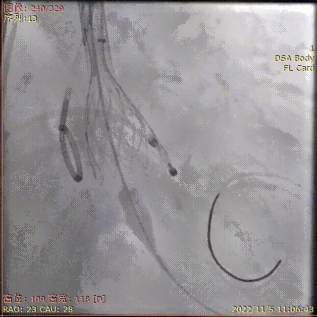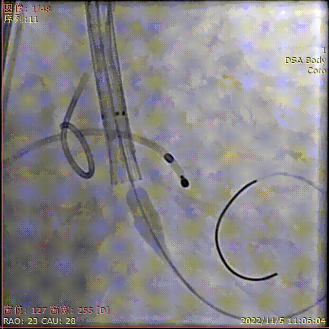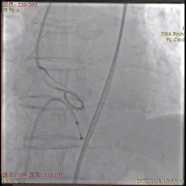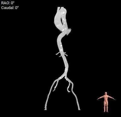 • 股-髂动脉走行适宜,内径可,腹主-髂总较多钙化分布,股动脉穿刺点位置附近无钙化,选择右侧股动脉作为主入路。