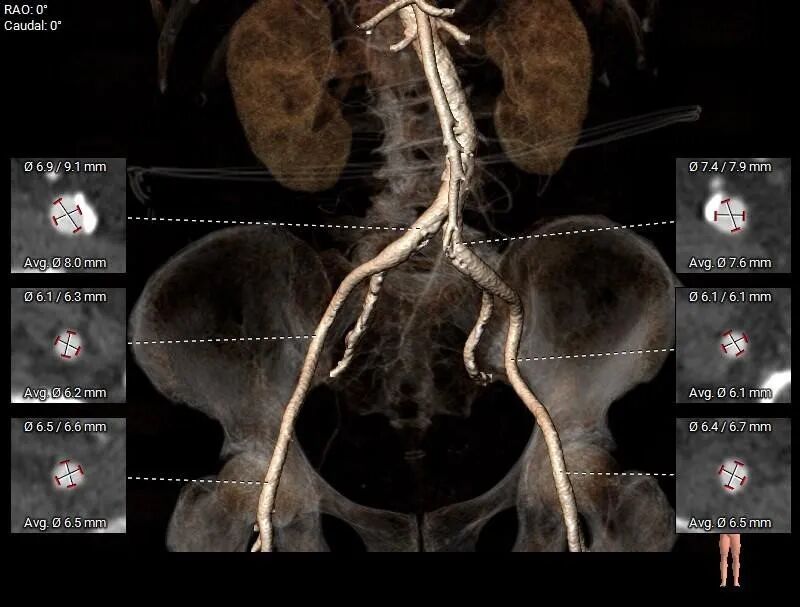 • 股-髂动脉走行适宜,内径可,腹主-髂总较多钙化分布。