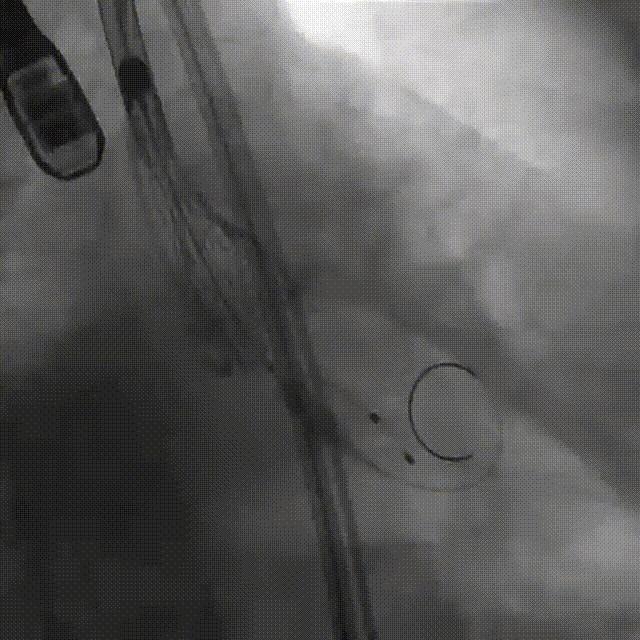 通过充分的术前讨论,翟昌林主任决定使用24mm球囊进行预扩,植入上海微创心通的27# VitaFlow Liberty™瓣膜,使用输送系统自带内联鞘;