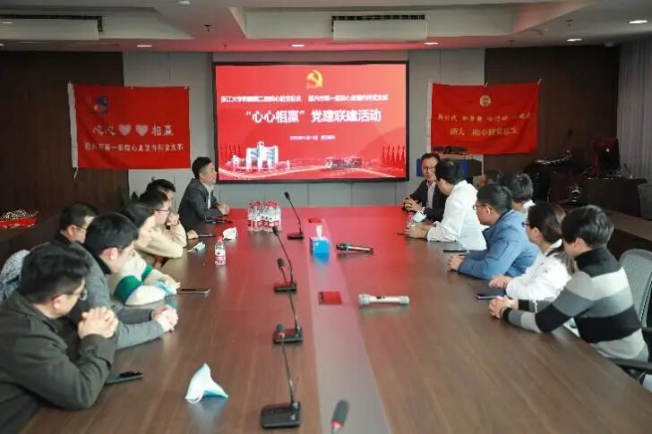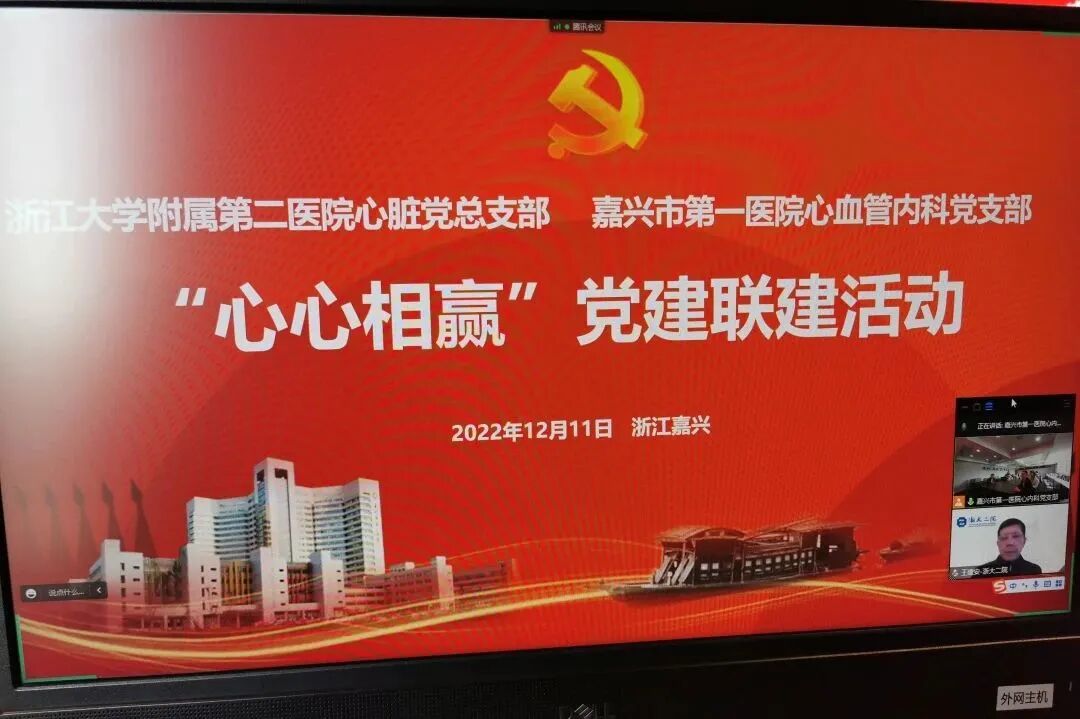手术当日,我院心血管内科党支部还与浙江大学医学院附属第二医院心脏党总支进行了“心心相赢”党建联建活动。浙江大学医学院附属第二医院党委书记王建安、心脏总支部书记刘先宝,嘉兴市第一医院党委书记钱钢,心血管内科党支部书记翟昌林、王志勇副主任、徐文博副主任等参加活动。活动中,共建双方就学科建设经验成果、经历分享、建设目标、存在问题等方面相互探讨。钱钢书记提出希望今后能与浙江大学医学院附属第二医院心血管内科进行更广泛的合作和交流,党建引领业务,业务促进党建。