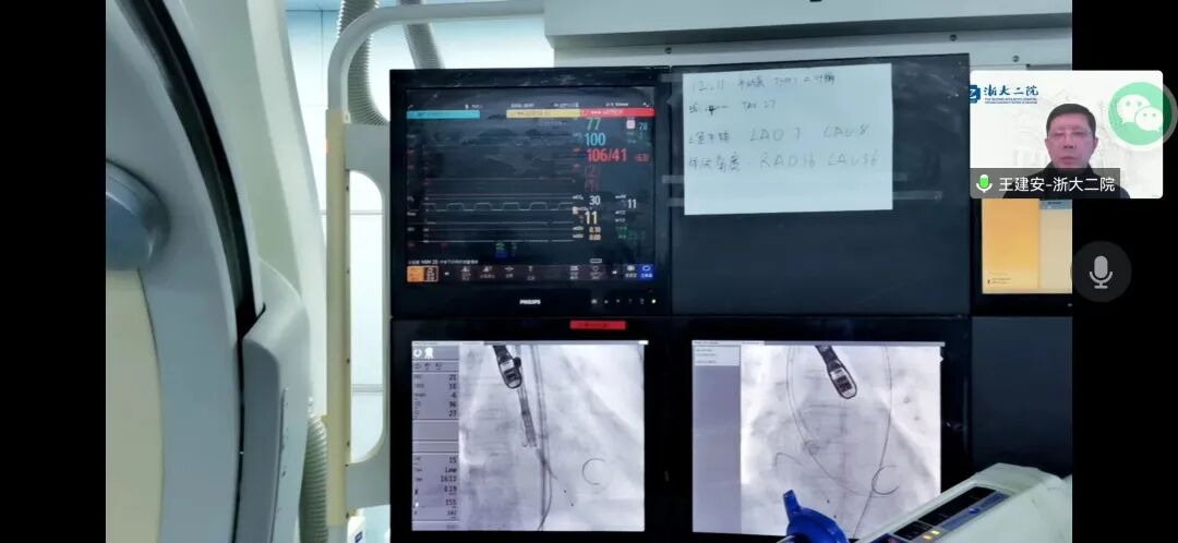 浙江大学医学院附属第二医院王建安书记线上评估瓣膜植入深度、瓣周漏情况