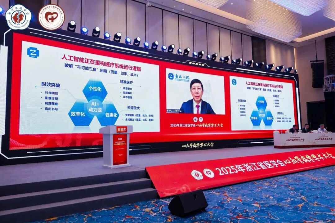 葛均波教授以“STEMI救治要点与微循环保护”为题,结合最新临床研究数据、病例分析及团队科研成果,重点探讨了微循环功能障碍(CMVO)的机制与防治进展,为优化STEMI临床实践提供了重要指导。马长生教授着眼于“心房颤动治疗”,分享多项国际前沿研究,剖析了当前房颤诊疗领域的热点争议及最新进展,强调个体化精准治疗将成为趋势。霍勇教授聚焦醛固酮合成酶抑制剂(ASI)、系统阐述了该创新药物的作用机制与临床前景,为高血压治疗提供了全新方向;杨杰孚教授从最新指南解读出发,指出应加强心肌病早期筛查,建立心肌病分类数据库,规范心肌病治疗;周胜华教授带来了立体定向放疗在心血管疾病中的应用进展,提出放射治疗在心血管疾病领域的应用充满潜力但也面临挑战,需要更广泛的技术创新和多学科合作。王建安教授立足浙二经验,以AI赋能医疗变革为切入点,分享了关于AI智能全景医院建设的探索与实践。