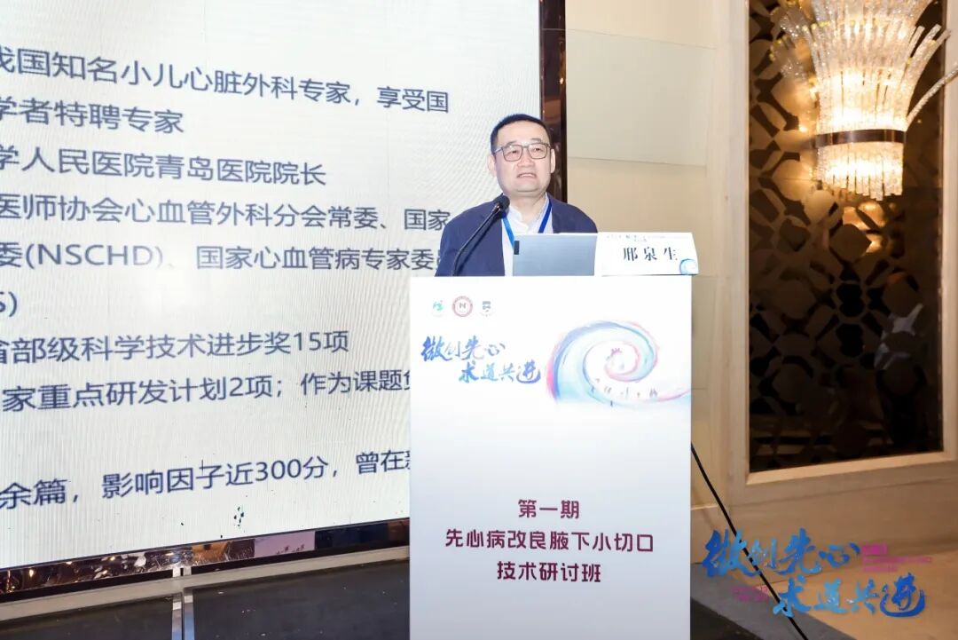 陈欣欣教授回顾我国先心病外科的发展态势提到,2024年全国先心病手术量达到约8.8万例,数量再创新高,以改良腋下小切口为代表的微创手术在各中心快速增长。他充分肯定了国内多位专家团队在改良腋下小切口手术方面所做的长期探索和贡献,并强调“细节决定成败”。当前学界正不断探讨如何优化切口设计和手术路径,使手术时间更短、创伤更小、效果更佳。相信通过交流碰撞,本次研讨班必将推动这一技术进一步成熟。