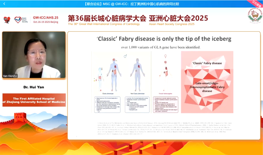 浙江大学医学院附属第一医院的严卉博士介绍了法布雷病的诊疗挑战。法布雷病是一种X连锁遗传的溶酶体贮积症,由GLA基因突变导致α-半乳糖苷酶A缺乏,Gb3脂质蓄积,从而引起多器官损害。