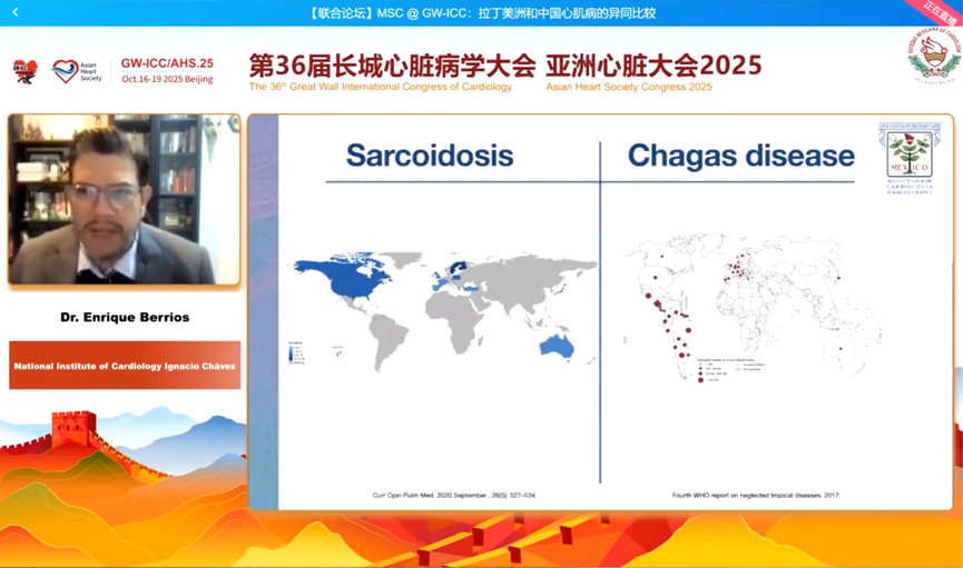 Chagas病与心脏结节病的鉴别诊断,构成了本次报告的第一个核心议题。墨西哥国家心脏病研究所的Enrique A Berrios博士指出,尽管这两种疾病的地理分布传统上被认为相去甚远——Chagas病主要流行于拉丁美洲,而结节病则在北半球更为常见,但两者在临床表现上存在惊人的相似性,形成了诊断陷阱。