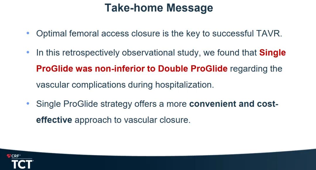 经股动脉途径经导管主动脉瓣置换术(TAVR)已成为治疗严重主动脉瓣狭窄的主流术式,而血管闭合策略的选择直接关系到患者围手术期安全。浙江大学医学院附属第二医院王建安院士、刘先宝教授团队开展的单中心回顾性观察研究,聚焦单把 ProGlide 与双把ProGlide在经股动脉TAVR穿刺点闭合中的疗效对比,为临床实践提供了重要参考,相关成果发布在TCT 2025大会上。