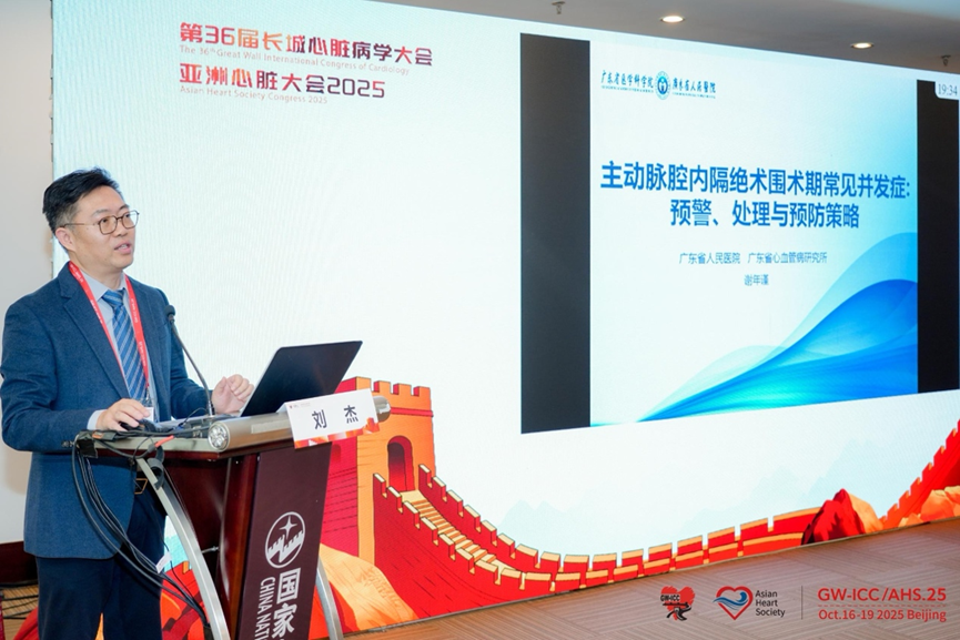 广东省人民医院的谢年谨教授的报告由南宁市第一人民医院刘杰教授代为汇报,系统总结了主动脉腔内隔绝术(TEVAR)围术期并发症的管理策略。报告强调,严格的血压与心率控制是贯穿始终的核心。对于最令人担忧的脊髓缺血(SCI),报告提出了通过优化血压管理、预防性脑脊液引流等综合措施进行防治。此外,报告还详细讨论了术后植入后综合征(PIS)、支架感染、急性肾损伤及瞻望等并发症的鉴别诊断与处理原则,强调了“严于术前,精于术中,勤于术后”的全程管理理念对于保障患者安全至关重要。