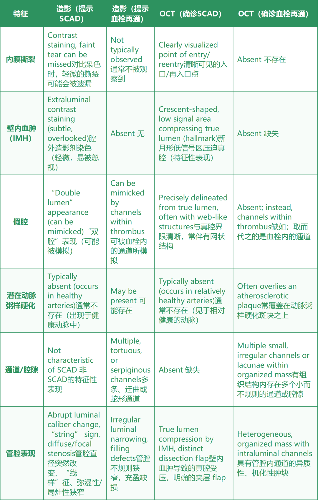 OCT克服了这些局限。其核心优势在于能够通过显示特征性影像,明确区分SCAD与血栓再通: