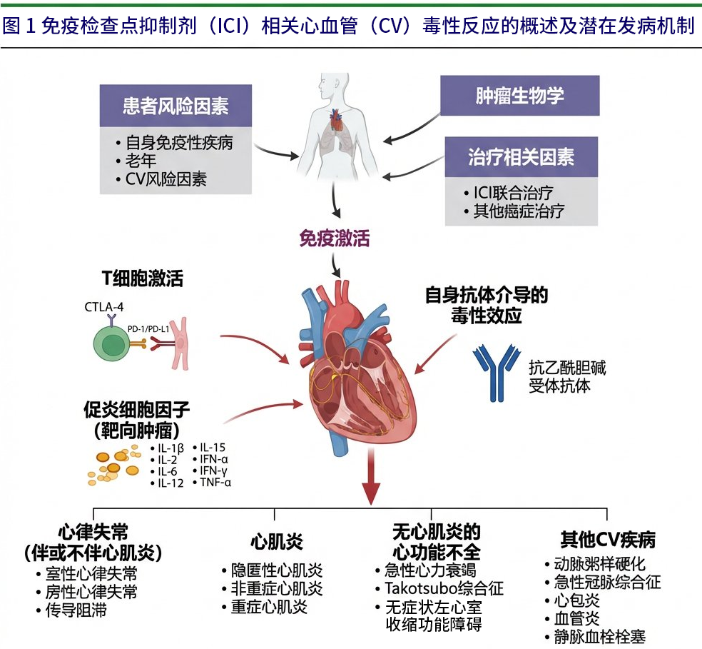 图1免疫检查点抑制剂(ICI)相关心血管(CV)毒性反应的概述及潜在发病机制