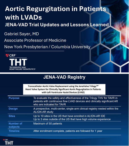 与此同时,JENA-VAD注册研究聚焦合并左心室功能不全的重度主动脉瓣反流患者——这类患者病情更复杂、手术风险更高,约1/3的LVAD患者在植入3年后出现显著AR,临床治疗需求迫切却长期缺乏针对性解决方案。该研究旨在探索Trilogy瓣膜在该特殊人群中的安全性、有效性及心功能改善效果,填补该领域临床研究空白,同时完善Trilogy瓣膜的临床证据链,实现从“通用治疗”到“精准适配”的升级,助力临床实现个体化、精细化治疗。
