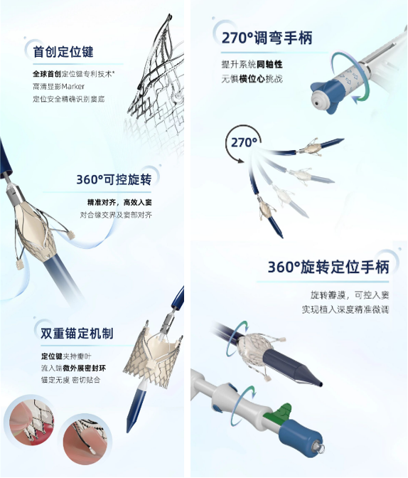 作为JenaValve公司历经五代技术更迭的成熟产品平台,Trilogy在技术路线上已完成了从“经心尖”到“经股动脉”的完整进化,实现了从早期探索到临床应用定型的跨越。其设计精密的输送系统集成了多项专利功能,在确保瓣膜递送过程安全、精准的同时,也为手术结果的有效性与确定性提供了坚实保障。