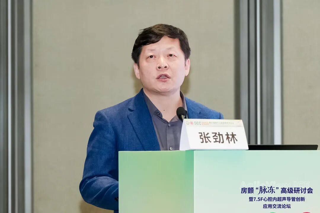 中国医学科学院阜外医院深圳医院张道良教授带来了主题为“AgileView™ ICE在冷冻消融手术中的临床应用”的精彩报告。张教授分享了其使用AgileView 7.5F ICE在房颤冷冻消融手术中的应用流程,强调其在房间隔穿刺、导管定位及并发症监测中的重要价值。他指出,传统X射线引导下的房间隔穿刺存在诸多局限:手术高度依赖经验,无法直视卵圆窝位置,同时房间隔形态差异大。相比之下,ICE不仅能精准引导房间隔穿刺,显著降低手术射线量,还可以实时监测左心耳血栓和心包情况,提高手术安全性。张教授通过具体病例展示了AgileView™ ICE在冷冻球囊房颤消融手术中的优势:7.5F全球最细超声导管可轻松进入左房观察肺静脉,为导管贴靠及封堵提供精准判断,从而降低并发症风险,让房颤介入治疗更安全、高效。