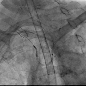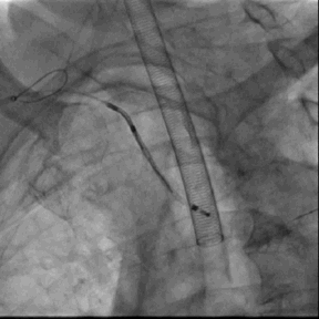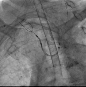 2. 经右桡动脉置入Sentinel CPS系统,释放于头臂干、左颈总动脉位