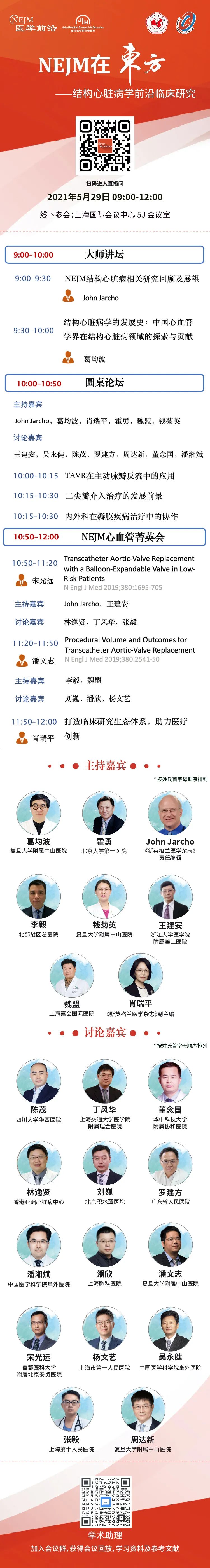 “NEJM在东方——结构心脏病学前沿临床研究”分为大师讲坛,圆桌论坛及NEJM心血管菁英会(NEJM journal club)三部分。