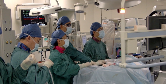 尚小珂教授、陈澍教授、钟禹成教授进行导管操作