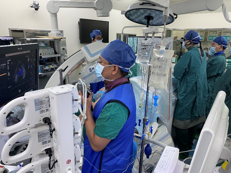 谢明星教授进行术中食道超声监控与引导