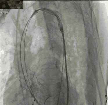 降主血管迂曲,弓部夹角锐利,弓部宽度较短,可谓是“山路十八弯”,得益于TaurusOne®输送系统优异的过弓性能,并在Snare辅助下顺利完成瓣膜系统过弓。