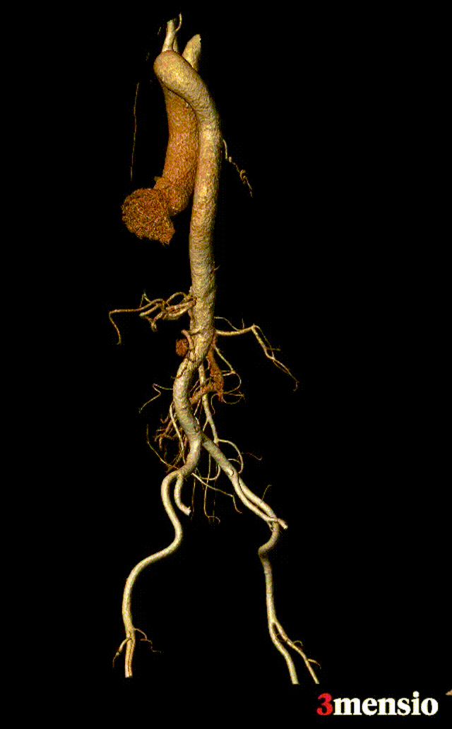 双侧股动脉管径尚可,主动脉弓部夹角锐利(54°)、弓部宽度较短(最短处仅58.8mm),降主动脉轻度扭曲,输送器过弓、跨瓣难度较高。