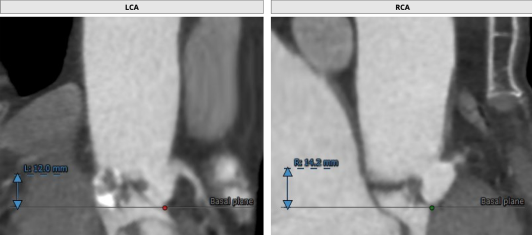 冠脉开口高度可,未有瓣叶遮挡征象