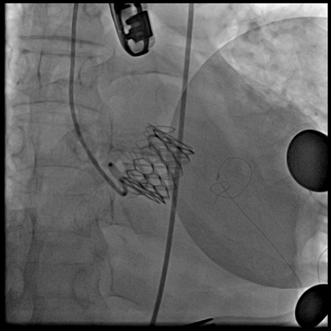 患者男性,72岁,有慢性肾衰血透病史,几年前因重度主动脉瓣返流,行经心尖介入主动脉瓣植入手术(TAVR),植入25号自膨式介入瓣膜。