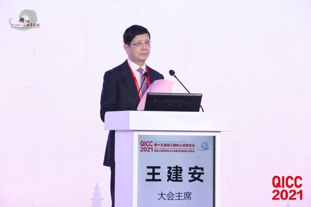 开幕式上群贤毕至,大会主席、浙江大学医学院附属第二医院王建安教授担任开幕式主持人。中华医学会心血管病学分会主任委员韩雅玲院士,浙江省卫生健康委员会副主任俞新乐先生,浙江大学副校长周天华教授,浙江省医学会驻会副会长陆新成先生,首都医科大学北京朝阳医院杨新春教授等嘉宾亲临现场。中国医师协会心血管内科医师分会会长葛均波院士、美国TCT主席Martin Leon教授,美国心脏病学会杂志(JACC)主编Valentin Fuster教授,北京大学分子医学研究所所长、新英格兰杂志副主编肖瑞平教授,澳大利亚墨尔本大学林延龄教授等嘉宾线上出席。同时,陈端教授、陈君柱教授、李佩璋教授、任森根教授、符蓉教授、傅国胜教授、朱建华教授、毛威教授等浙江心血管领域专家汇聚一堂,共同参与和见证QICC2021盛会启幕。