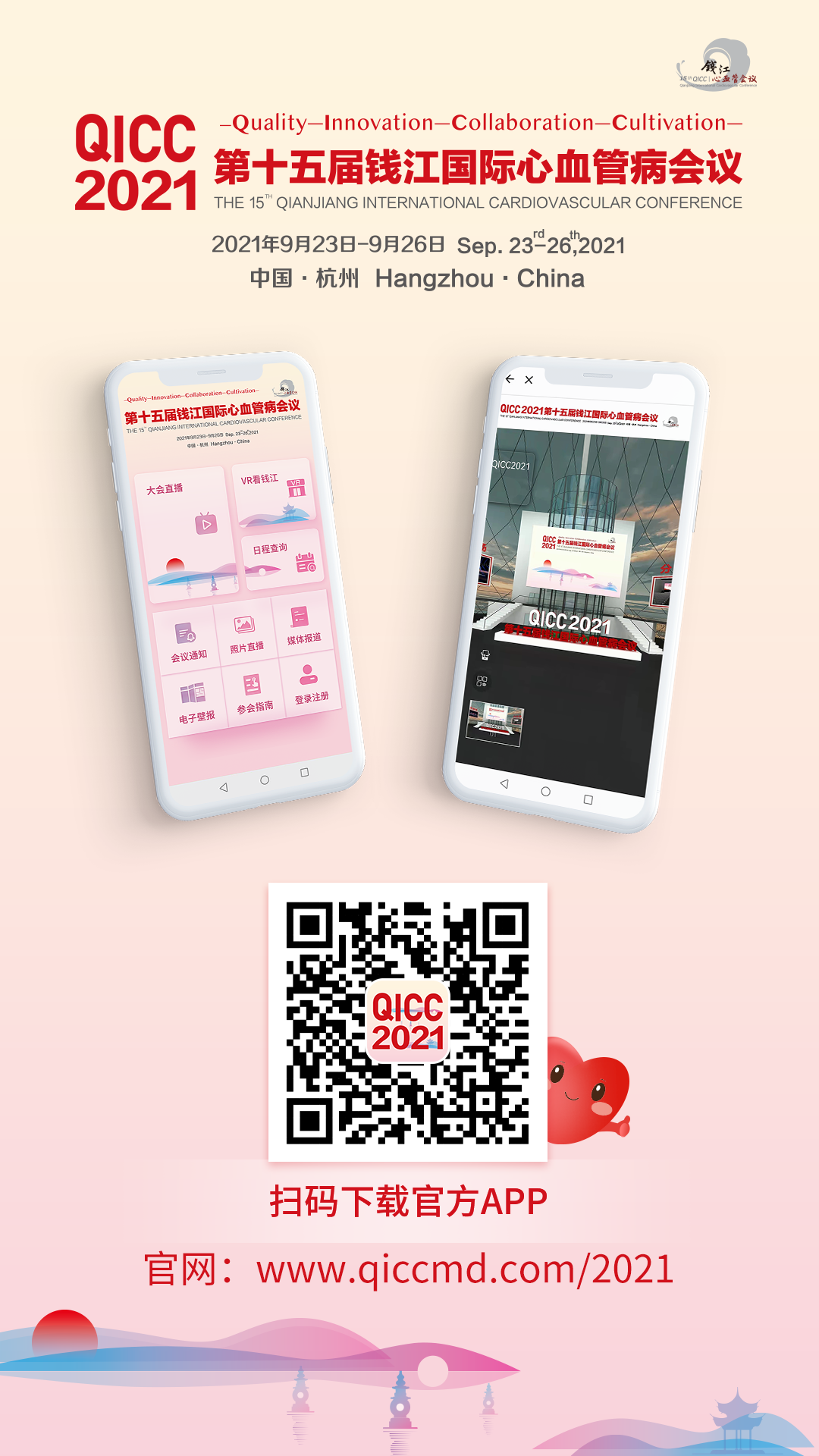 9月的杭城秋高气爽、风景怡人。9月24日,第十五届钱江国际心血管病会议(QICC 2021)开幕式在杭州隆重举办。今年大会开幕式继续拥抱互联网,以杭州线下主会场为主,辅以线上多点连线办会的形式,同步配备同声传译进行全球直播。
