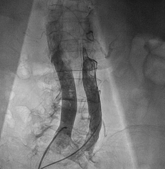 最终造影显示人工瓣膜位置理想,无明显中心或瓣周反流,升主动脉、主动脉弓及降主动脉均未见明显主动脉损伤征象。