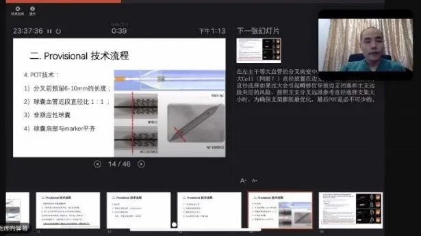 除去常规旋磨等术式的详细讲解外通过病例分享射频能量对小血管的应用。提到要着重保护近段冠脉血管,并且对其进行封堵,防止血流对射频能量的损耗。并且该病例在后期随访时没有再通。这是一项值得在临床开展的工作。陈纪言教授也对此表达了认可。