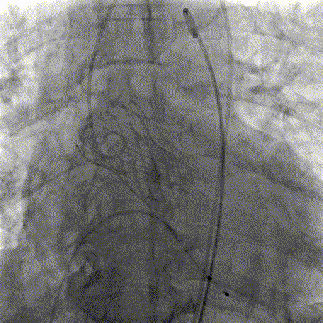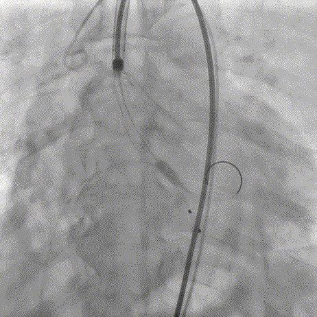· 外周走行适宜,降主及胸主动脉存在散在钙化,左侧股动脉分叉稍高,血管内径可,血管内壁存在钙化和不规则纤维增厚,入路穿刺规范操作,小心通过,避免入路血管损伤及相关并发症。