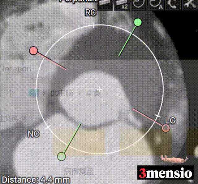 3.左右冠开口高度尚可,瓣叶冗长,左冠瓣叶长度>瓣叶附着缘到冠脉开口距离。