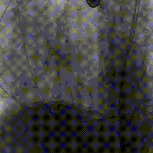 4.150次/分快速起搏下以20mm 巴尔特球囊进行预扩张,扩张同时造影无明显腰征,无造影剂反流;