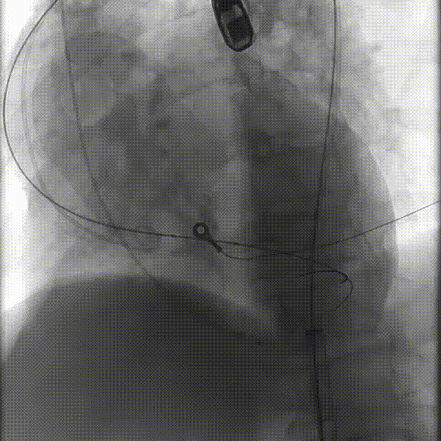 6.在150次/分快速起搏下释放瓣膜至工作位;