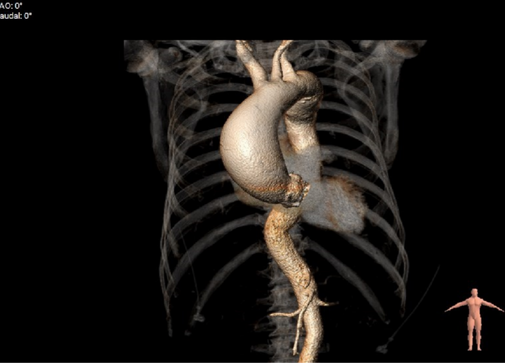 该患者为一例合并升主动脉瘤的大角度横位心重度AS患者。