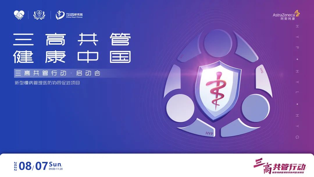 2022年8月7日上午,“三高共管行动——新型慢病管理医防协同促进项目”启动会成功举行。会议特邀国家卫生健康委规划发展与信息化司毛群安司长参会指导,共邀请复旦大学附属中山医院葛均波院士、北京大学第一医院霍勇教授、北京大学人民医院纪立农教授、北京大学人民医院孙宁玲教授、解放军总医院第一医学中心叶平教授、复旦大学附属华山医院李勇教授、华中科技大学同济医学院附属协和医院黄恺教授、上海交通大学附属第一人民医院彭永德教授、北京协和医院肖新华教授、华中科技大学同济医学院附属协和医院陈璐璐教授等十余位心血管、内分泌专家参会交流,从三高共管出发,探索健康中国慢病综合防控新策略。