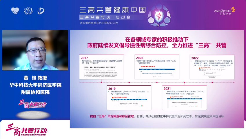 黄恺教授在介绍“三高共管行动项目介绍及实施计划”时指出,项目计划通过《三高共管规范化诊疗中国专家共识》的编撰,普及三高共筛,加强三高患者风险评估和三高共管多维度学术交流,提升以患者为中心的三高综合诊疗水平,降低心血管代谢疾病发生率和死亡率。