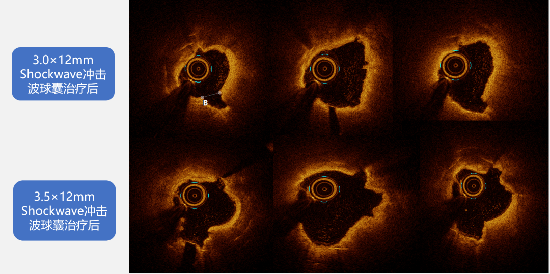 图7:3.0*12mm与3.5*12mm Shockwave冲击波球囊治疗后OCT影像对比