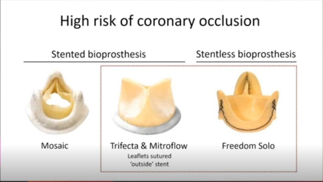 而关于经导管主动脉瓣“瓣中瓣”手术,Lars Sondergaard教授强调术前应明确原生物瓣的相关信息。人工生物瓣可分为有支架瓣膜与无支架瓣膜,其中无支架瓣膜与长瓣叶支架瓣膜(超出支架范围)均是瓣中瓣手术发生冠脉阻塞的高危因素。