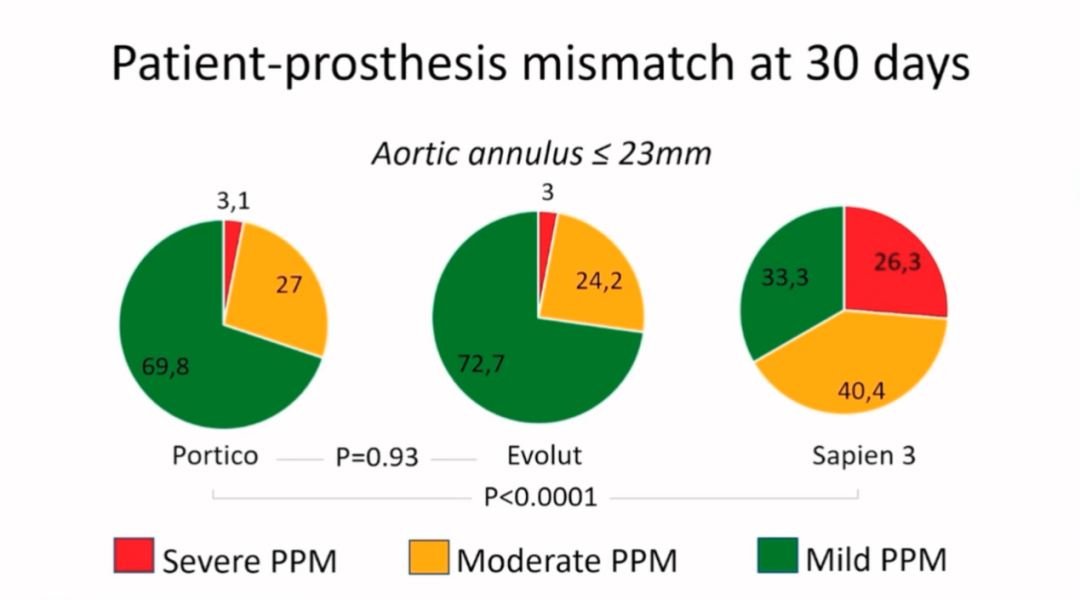 如何选择介入瓣膜:Lars Sondergaard教授提出,应首先为患者选择低PPM风险的经导管支架瓣膜。目前的经导管支架瓣膜基本分为自膨瓣(Protico和Evolut)和球扩瓣(Sapien 3),而不论植入位置的深浅,自膨瓣发生PPM的风险都要低得多。在一项随机对照研究中,对于小瓣环患者(<23mm)而言,自膨瓣组30天内严重PPM的发生率为3%,而球扩瓣组这一数据高达26%。因此Lars Sondergaard教授再次强调,当面对小瓣环患者时,更应选择PPM风险更小的经导管瓣膜,以保证其耐久性。