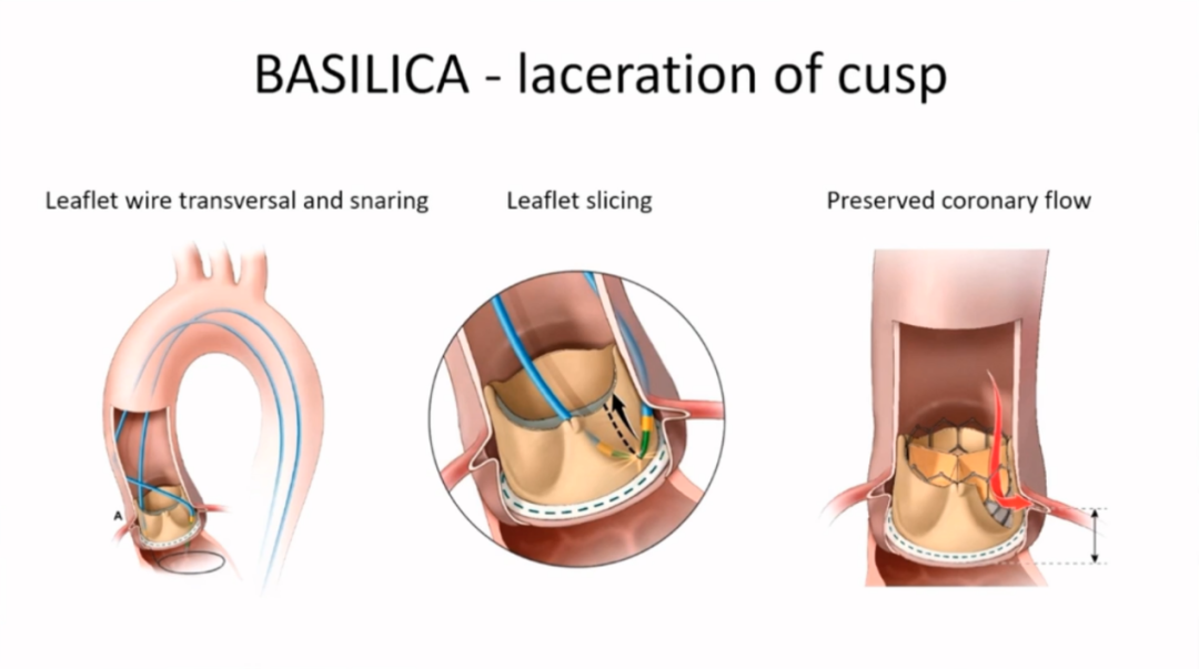 预防冠脉阻塞的冠脉保护技术:包括了烟囱支架保护和BASILICA技术。烟囱支架保护是在左冠脉或右冠脉开口处预先置入保护性支架并延伸至主动脉,从而预防冠脉阻塞。而BASILICA技术则是主动切开原生物瓣瓣叶,使其在经导管瓣膜植入时向两侧横向分离而非向冠脉开口移动,进而避免冠脉阻塞。