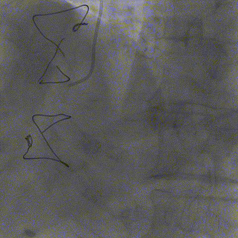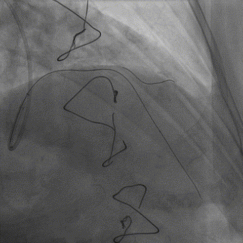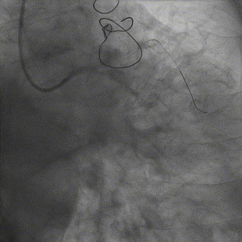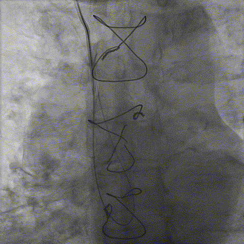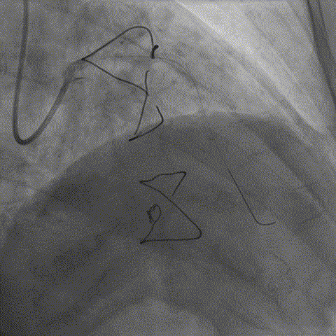 之前对手术指引导管估计有误,选择BL3.0支撑力不够,改换EBU3.5,导丝过病变但球囊过不去,手术期间EBU3.5不能下入窦底,用导引延长导管引导进入窦底,开始选用1.0*10到2.5*15升级球囊扩张病变。