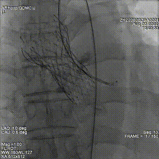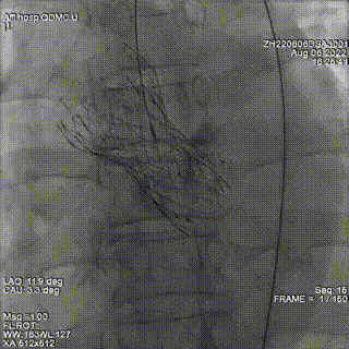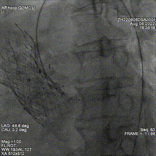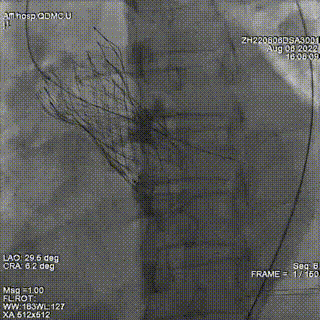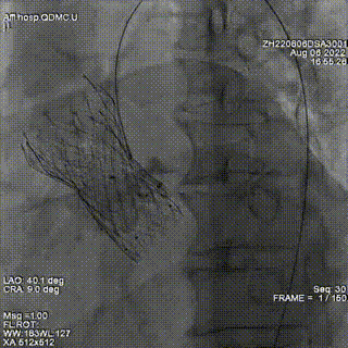 瓣周漏是TAVR手术后常见并发症之一,尤其当患者主动脉瓣叶存在严重团块状钙化时,钙化瓣叶与支架难以完全贴合,或支架膨胀不充分、植入位置过深或过浅等,都可能导致其产生。对于瓣膜植入过深或过浅的患者,血流通过瓣架未覆膜区域反流至左心室,可通过瓣中瓣手术方式封堵漏口,若瓣叶钙化斑块严重,导致自体瓣叶与瓣架无法充分贴合时,瓣中瓣则难以治疗,此时,可采用封堵器封堵漏口。而患者采用长支架自膨式瓣膜手术后,受支架顶端大花冠及密集的菱形网格影响,导丝通过漏口的难度较大,此类手术成为术者的一项挑战。在此,我们结合一例具备以上特点的病例同大家分享探讨。本例患者治疗由西京医院杨剑主任团队和青岛大学附属医院江磊主任团队共同完成。