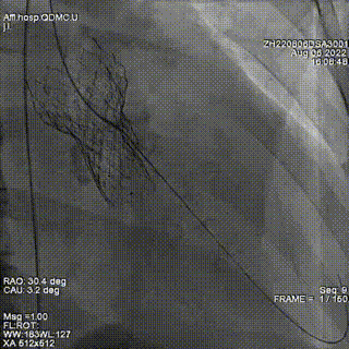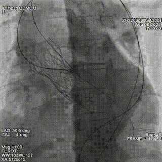 根据患者情况,TAVR瓣中瓣术后瓣周漏,心功能较差。支架瓣膜位置良好,功能良好,瓣周漏位置孤立,考虑与既往钙化位置相关,考虑瓣周漏封堵治疗。