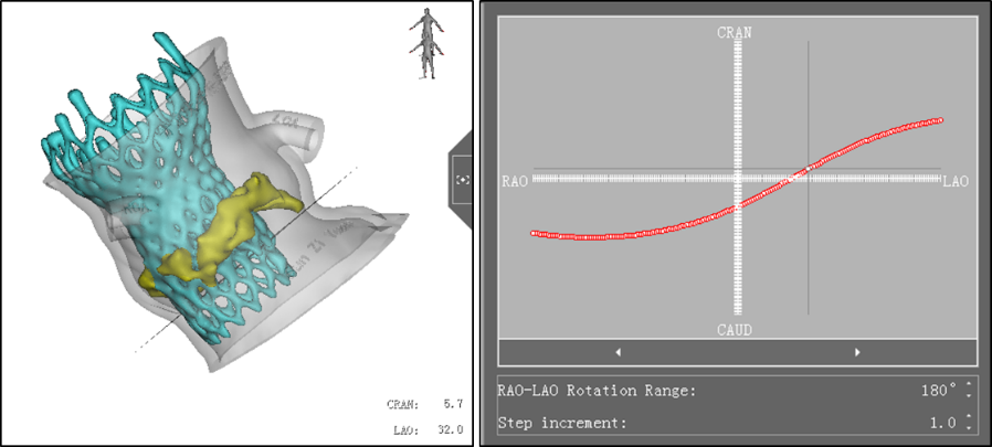 结合术前CTA评估,在S曲线中确定左冠切线位投照角度为LAO32 CRA6, 并在此角度下通过DSA引导导丝通过PVL。