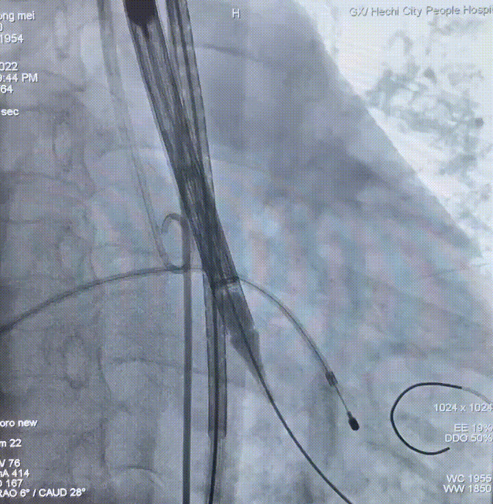 2022年9月1日,河池市人民医院心血管内科唐秀革院长、莫昌干主任团队,在医院麻醉科、超声医学科等多科室的协作下,使用VitaFlow Liberty™电动可回收经导管主动脉瓣输送系统成功为一位主动脉瓣重度关闭不全合并二尖瓣重度狭窄患者实施经导管主动脉瓣置换术(TAVR)+经皮二尖瓣球囊扩张成形术(PBMV)一站式手术。