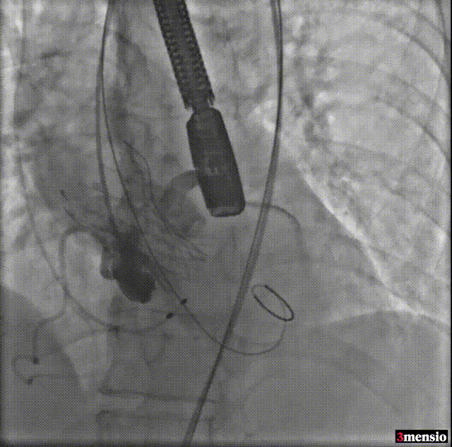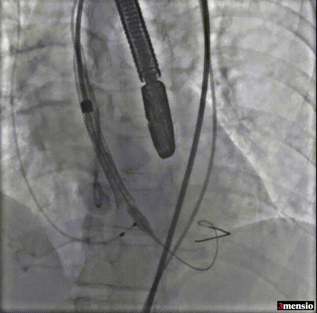 由于该病例瓣上限制较重,手术团队讨论决定使用沛嘉20mm球囊后扩处理: