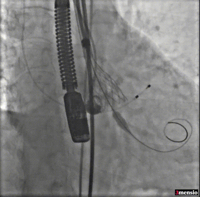 使用沛嘉20mm球囊预扩,预装沛嘉TaurusElite AV23瓣膜,释放高度瓣上0-2mm