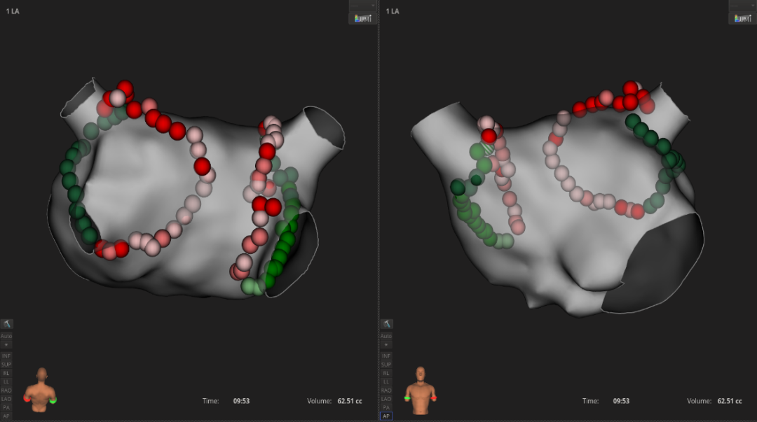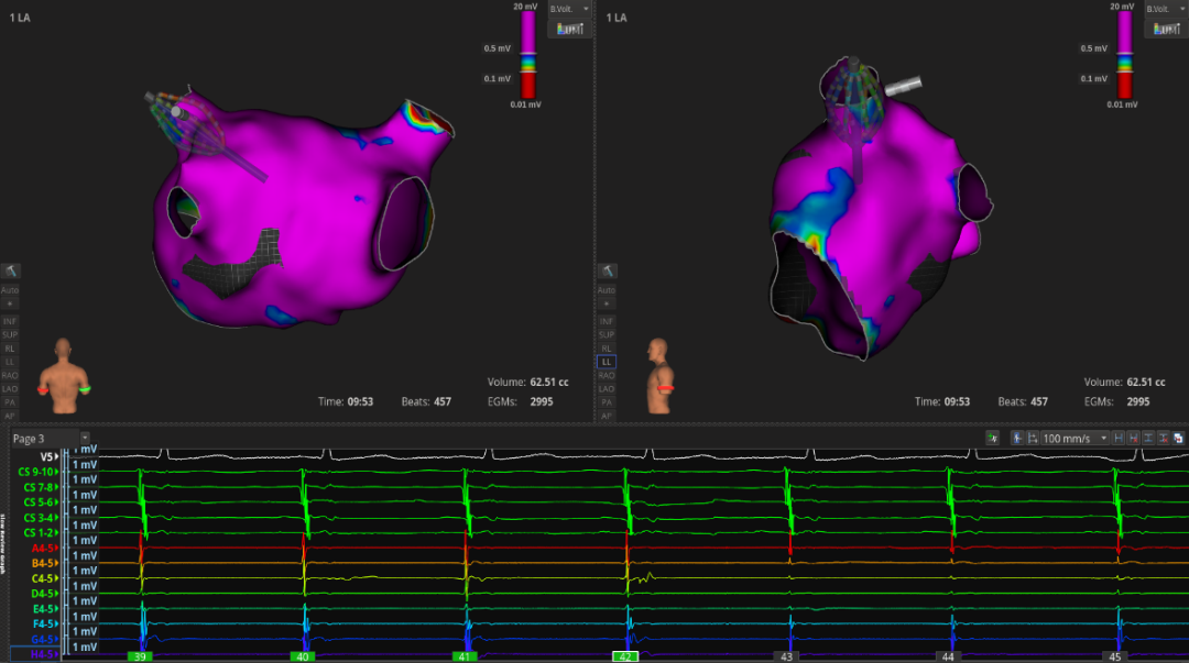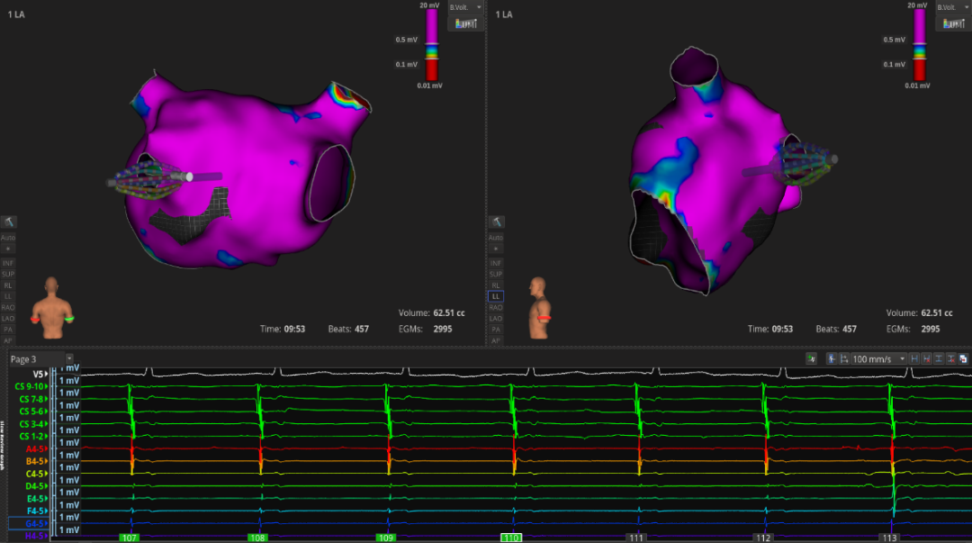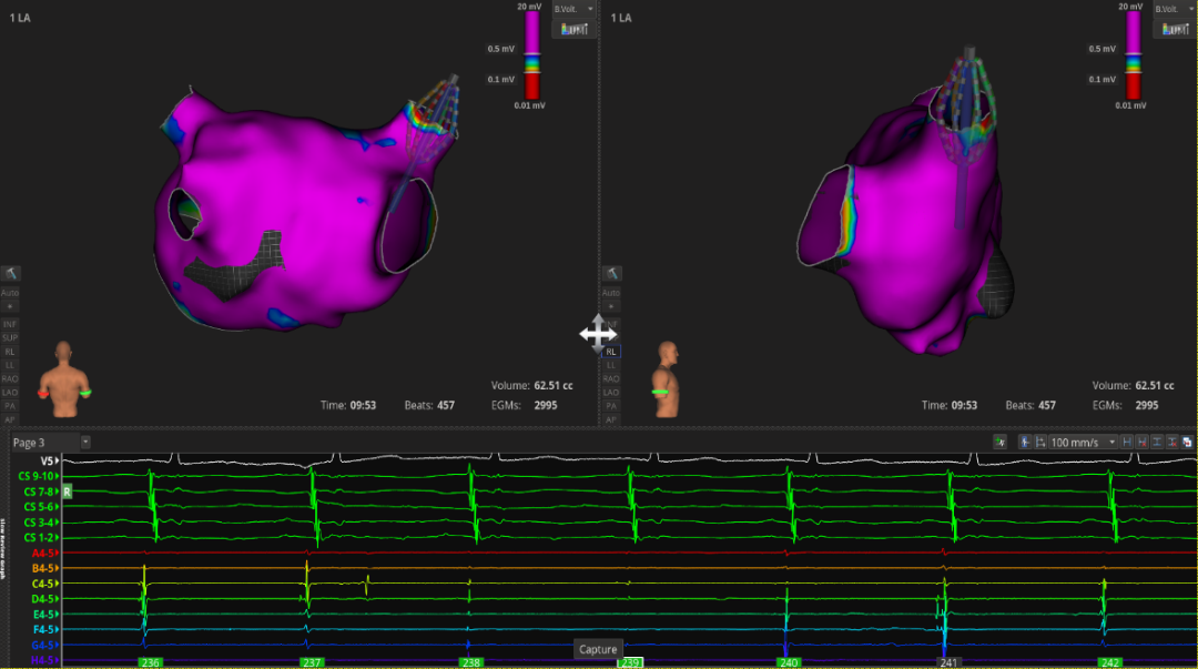 3.消融策略:因LPV和RPV肺静脉均有电传导,故决定行环肺静脉隔离(PVI), 本次PVI消融终点:消融中电位明显下降;orion网篮导管,LPV和RPV均阻滞。